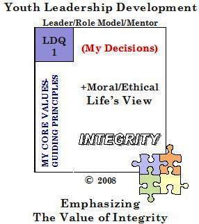 Integrity is the dominant Leadership Value in Leadership Development Quadrant 1 (LDQ1), and therefore is singled out in this quadrant for special emphasis. In doing so it is important to understand that the Value of integrity, along with the strong supportive role of the associated values of achievement, responsibility, and Courage all interact to become "the tracks to run on" for the developing Personality Characteristic of a +Moral/Ethical Life's View.