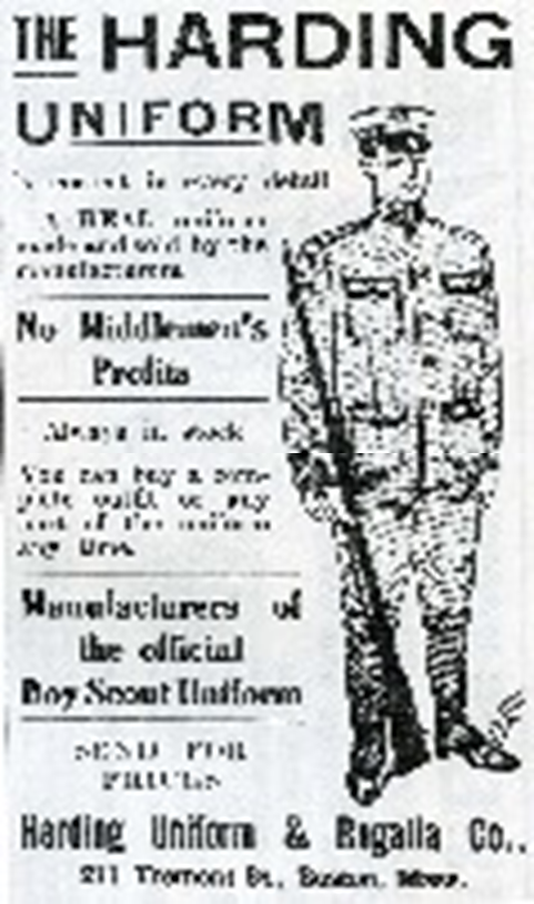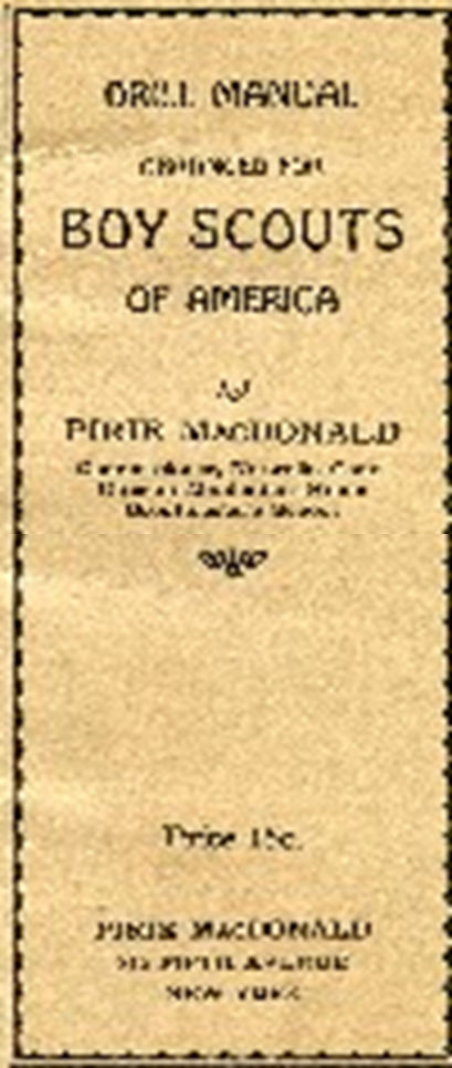 regulations, by-laws into place along with providing handbooks, uniforms and supplies, they had to rely on a lot of volunteer help and existing suppliers. They adapted B-P’s Scouting for Boys but had Ernst Thompson Seton make a few changes. That, of course, caused friction with B-P but they did get their own early version out in 1910 that way. Uniforms though were available through many private sources with many variations in style. However, when you have an ad in your first Boys’ Life issue in 1911 with a very definite pose of military style uniform complete with rifle, you know you are not making progress away from the military criticism. Then, when you have Boy Scouts of America volunteers helping with a publication known as a Drill Manual, you are not helping your cause.