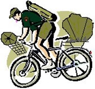 I carried cooking gear, extra clothing, 2 canteens and a bed roll. The bike had a luggage rack and saddle bag baskets. I put half of an army pup tent over the rack and baskets pushed it down into the baskets. I had packed the items I needed to keep dry in the baskets and covered them with the rest of the shelter half. The other half was used to wrap my bedroll. A musette bag was strapped to the handle bars with my canteens and miscellaneous small items.