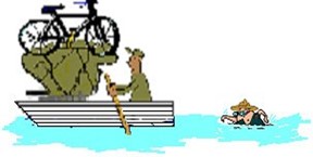 Sam rowed one of the new aluminum boats across to get me. He said, “I’ll have to make 2 trips…not enough room for you and the bicycle.” I emptied my pockets, took off my belt and shoes, threw them in the boat with Sam and said, “Meet you on the other side.” I swam across the old South Fork, and the water was fine.