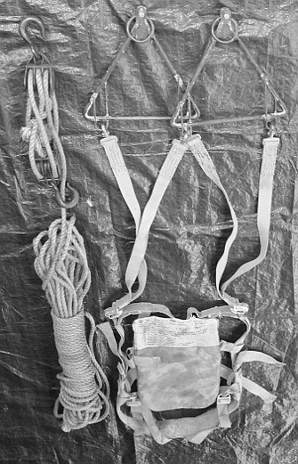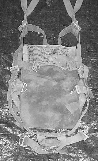 Ernie Roberts has the parachute harness buckled on, notice the shoulder straps.