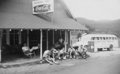 Dobbins Store on Highway 14 at Allison was a favorite place for Troop Ole 97 to get drinks and snacks. The Ole 97 Bus, “Swamp Fox”, gassed up ready to load and head to Memphis, Tennessee.