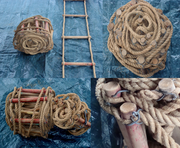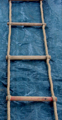 We entered the cave on a homemade rope ladder that we made at our Scout meetings. The ladder was 75 feet long, rungs were made from 12” sections of wooden broom and mop handles and were spaced 16” apart. We drilled a hole in each end, spread the one half inch sea grass rope apart, inserted the rung then secured the rung with a piece of wire through the rung and around the ropes. The ladder weighed about 25 pounds and was very functional with the exception we should have wrapped tape around the twisted wire ends. This oversight caused us much pain due to deep scratches on our hands and arms.