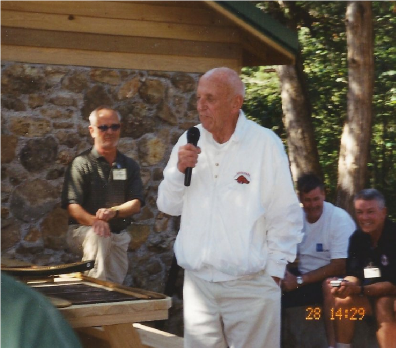 At the 1999 OKKPA reunion, a plan was presented to restore all 16 of the stone cabins. A four-thousand dollar donation would restore a cabin in one’s honor. I was confident that if I could create an Ole 97 Alumni roster, we could raise a sizeable sum of money for a larger project like renovation of the Thunderbird Lodge. What we donated would be a memorial to Buddy Irwin for his 51 years as Ole 97 Scoutmaster. This effort resulted in a $29,483 gift to the OKKPA at the 2000 reunion.