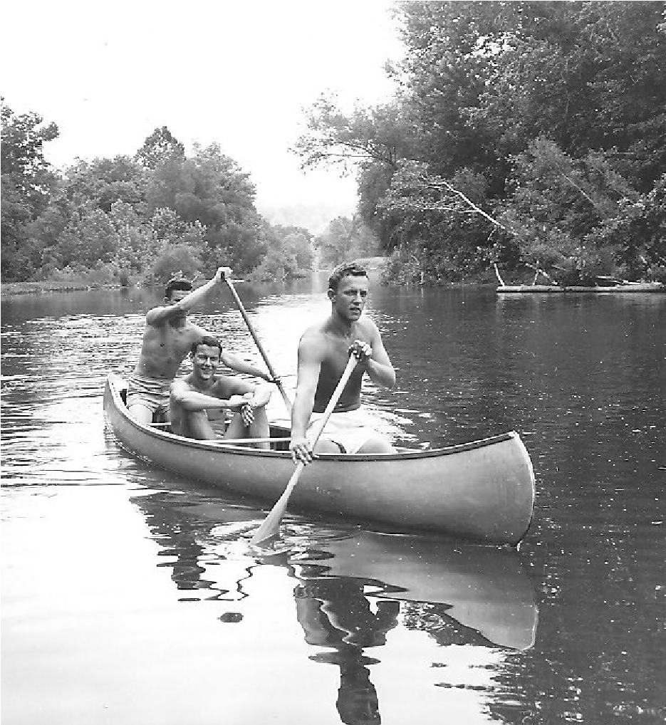 That worked out fine and after another three or four miles of back country gravel roads they finally passed camp ranger Burl Burnside’s house. Now, almost there, Bobby pulled the wore-out green Chevy into the quadrangle and instantly the crew felt new energy on arriving in front of the old wooden mess hall. At long last, they had arrived and it felt good. It had been almost a year since they had last breathed the unique, fragrant Kia Kima air. Their hearts no doubt were beating in unison as they walked between the mess hall and Thunderbird Lodge. Through the tall fragrant cedars, they headed downhill to the mighty Southfork at “the point.” The river never looked so good and they reached down and let the cold Southfork water run through their fingers. They stood there looking across the river thinking about the summer camp staff of 1950, now only a few months away. On a low bluff, a short distance beyond a small branch, their old staff cabin the “Rats Nest” beckoned to them and a quick visit was made as each heart beat faster. They all agreed it was well worth the trip to be there once again. Now, four of the guys wondered what they should do next! George had the answer, “Let’s go to the car. We’re going home!”